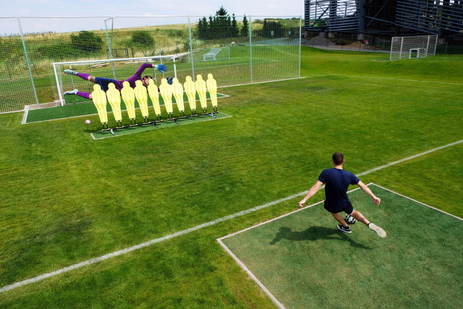 14 Spielfelder, ein Ziel. Ähnlich wie Fußballgolf, nur muss der Ball auf unserer einzigartigen FunFußball-Anlage mit möglichst wenigen Schüssen im Tor versenkt werden.